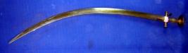 | Description / विवरण | Irani iron faulad sword with curved blade and a Alamgiri hilt with golden koft work. |