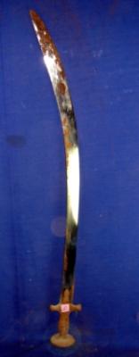 | Description / विवरण | Iron tegha sword with curved blade and Alamgiri hilt without any decoration. It is rusted. |