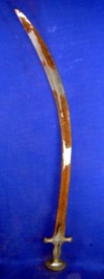 | Description / विवरण | Iron Tegha Sword with curved blade and Alamgiri hilt without any decoration. The blade is rusted. |