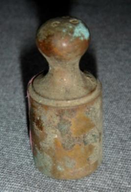 | Description / विवरण | Brass weight of 50 gm having cylindrical body, circular knob at top and flat circular base. |