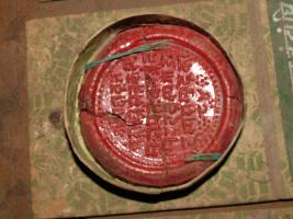 | Description / विवरण | It is a seal of lac in saffron colour having Farsi inscription and Sri Radha Vraj Mahapati written at the base. |