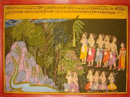 | Description / विवरण | Miniature painting based on Mahabharat - Vana parva This painting depicts that Pandavas are going towards Gandhmardhan hill than thundering come. On the painting Pandavas are seen along with Draupadi. |