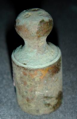 | Description / विवरण | Brass weight of 50 gm having cylindrical body, circular knob at top and flat circular base. |