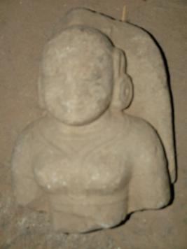 | Description / विवरण | It is a fragment of female figurine . Big circular ear ornament and necklace can be seen. |