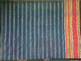 | Description / विवरण | This is Breast cloth blouse having silk and cotton border along with horizontal thick line in sky colour. Its border is divided into three section Two dotted horizontal lines with green and white colour. Its background is red. |