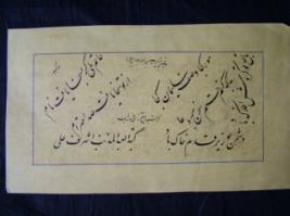 | Description / विवरण | It is hand written by Aga Mirza in Persian language of Nastaliq style .It gives the details that Maharao Raja Sawai is very great . He always ready for help of any person of his state. This text is written in black ink on golden ground within golden colour lining border. |