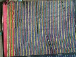 | Description / विवरण | This is Breast cloth blouse of silk and cotton border with horizontal thick lines. Colours used are yellow and reddish. It has thick border divided into two sections |