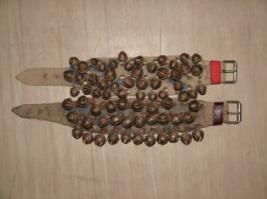 | Description / विवरण | 69 numbers of Ghungurus are tied on two cotton belts by leather wire arranged in three rows. The cloths is having buckle to tie. One belt is having 31 Ghungurus & the other is having 38 Ghungurus. |