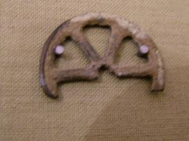 | Description / विवरण | Half portion of wheel made up of copper, now remaining in semi circular shape and affected by incrustation. |