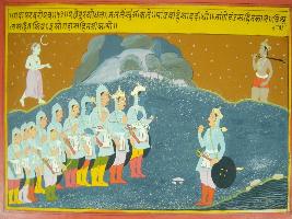 | Description / विवरण | Miniature painting based on Mahabharat - Gada parva. The painting depict that Duruodana is standing in front of Pandavas and challenging for Gada -yudha . |