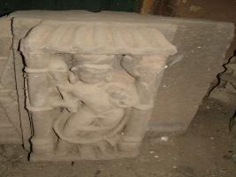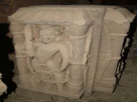 | Description / विवरण | It is a sculptural plaque, decorated with two figures, while first is shown kati hasta, holding a sword, the other one a lotus bud. Both are carved out in tribhanga posture. |