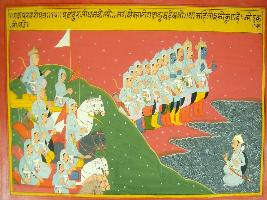 | Description / विवरण | Miniature painting based on Mahabharat - Gada parva. The painting depicts that Duruodhana challenging Pandavas for Gada-yudha while Pandavas are seen along with their army. |