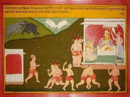 | Description / विवरण | Miniature painting based on Mahabharat - Virat parva. Bhim is depicted fighting with Kichat and their fight has been compared with fighting between two elephants and two bulls. |