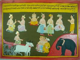 | Description / विवरण | Miniature painting based on Mahabharat - Udyam parva depicting Bindura is talking to his son and asking him to take the responsibility of kingdom just as bulls carry loads. He again says that their kula belongs to Brahman and they give respect to it and asks his son not to bow down in front of the enemy. |