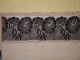 | Description / विवरण | Specimen of Nottingham machine made lace on net base, locally called Black Silk Guipure floral designs with leaves. The upper portion is designed with triangular shaped net work. |