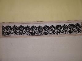| Description / विवरण | Specimen of Nottingham machine made lace on net base, locally called Black Silk Guipure cripple floral designs with leaves. Thirteen small flowers are designed on it. The lace base is in net. |