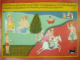 | Description / विवरण | Miniature painting based on Mahabharat - Udyam parva. The painting depicts Bindura asking his sons to be brave and give shelter to those who need it. He also says that killing of innocents is not bravery. |