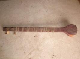 | Description / विवरण | This is a Tanpura with a painted Tumbi. It has a leaf designed Gulu, which is fixed on the tumbi. The Ghudcha is missing. The tabli wooden plate cover the tumbi is devoid of painting. The Langot wire fixing points is having 4 holes and is designed as a betel leaf. The dandi is having 4 holes without khunti wooden pegs . It is hollowed. Golden, black colours are used for painting. |
