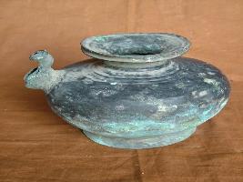 | Description / विवरण | Copper object is named as Jhari. It has a globular body with a flaring flat rim with a spout. It is pedestal base. |