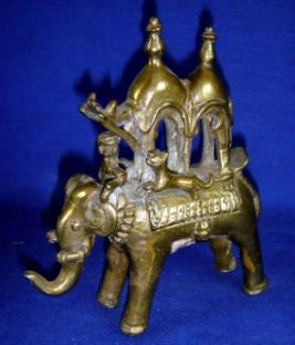| Description / विवरण | Metal decorative elephant with rider on its back. A hauda and a tiger is depicted on it. Hauda is beautifully carved with jali designs. |