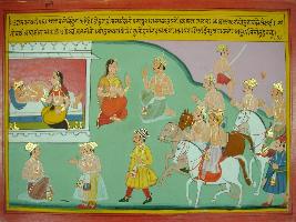 | Description / विवरण | Miniature painting based on Mahabharat - Udyam parva. The painting depicts the conversation of Vidura with his wife where he tells his wife about the duties of human being. |