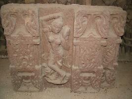 | Description / विवरण | It is a sculpture of mirror holding female. It has two armed. One right armed stand above head. In left armed mirror had shown. Bangle had shown both armed. The sculpture had shown in tribhang posture. Right feet crossed to left and touches toe at base. |