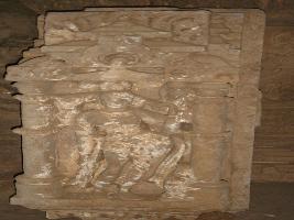 | Description / विवरण | A sculptured architectural fragment of a pillar depicting a female chanwari bearer standing and holding a chanwari in right hand and left hand is lying parallel to her body, She is well ornamental wearing necklace, earrings and girdle and her tussle hanging upto the knee. The upper and both the side having floral design. |