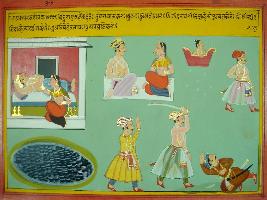 | Description / विवरण | Miniature painting based on Mahabharat - Udyam parva. The painting depicts Bindura and his wife where Vidura is seen in sleeping position. Bindura is telling his son that the bravey which always destroy the glory of the dynasty is not considered as baravey. |