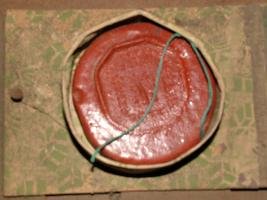 | Description / विवरण | It is a seal made up of lac in saffron colou, having Farsi script in the middle, while Sahab Bahadur written at base. |