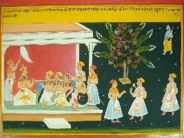 | Description / विवरण | Miniature painting based on Mahabharat - Virat parva depicting Bhim is coming to court to king Virat with Pan and big spoon in hand. king Virat ask him that who are you -Gandharva or Devta . |