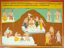 | Description / विवरण | Miniature painting based on Mahabharat - Gada parva depicting Balram is going to Shiv tirth, worshipped Shiv and doing yagna. At the centre Devtas is selecting Kartikaya as their commander. On the upper right quarrel between Vashishth and Vishwamitra is depicted. |