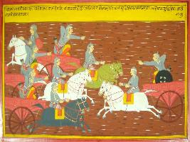 | Description / विवरण | Miniature painting based on Mahabharat - Gada parva depicting war between king Yudhisthir and Madri king Shalya. |