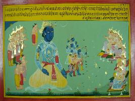 | Description / विवरण | Miniature painting based on Mahabharat - Udyam parva depicting Krishna telling Duryodhan that he is fool as he doesn t know his avataras. Then Krishna shows his avataras to him, seeing which Duryodhan got scared. |