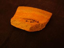 | Description / विवरण | Potsherd is having slightly out-turned rim portion, red slip which is flaking now and containing micas. It belongs to red slip ware associated ware of O.C.P. culture. It is well fired, wheel made. |