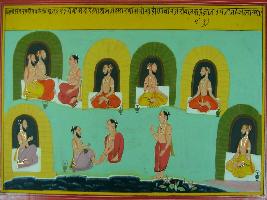 | Description / विवरण | Miniature painting based on Mahabharat - Adi parva depicting Dhrupad coming to hermitage and telling about his confrontation with Dronacharya. |