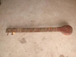 | Description / विवरण | Tanpura much similar to Sitar has a big guard shaped tumba having arched leaf plates decorated over its upper portion. It is fixed with a concave plate tabli over it with a piped wooden coil. The belly is attached to a long handle dand . The belly and handle both are hollow from inside. Two knobs are fixed to its two sides while two knobs at the front side are missing. Its groove and wires are also missing. Its painted decorations have also faded. |