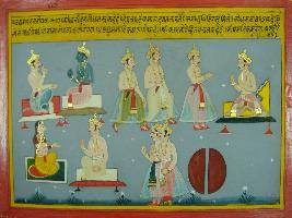 | Description / विवरण | Miniature painting based on Mahabharat - Udyam parva depicting Gandhari is telling Duryodhan to go and give half of the state to Yudhisthir. |