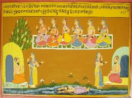 | Description / विवरण | Miniature painting based on Mahabharat - Gada parva depicting sage Vashishth is performing penance on the bank of river Saraswati. |