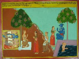| Description / विवरण | Miniature painting based on Mahabharat - Adi parva depicting Pandavas sleeping, Bhim and Hidimb are fighting and seeing this his sister Hidimba gets fascinated towards Bhim and falls in love. |