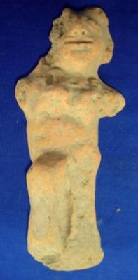 | Description / विवरण | Terracotta female figurine in standing position. Her arms, left feet and right part of face are chopped off. The figure is duly ornamented. |