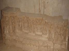 | Description / विवरण | A sculptured architectural fragment of a lintel depicting two Kirtimukha beside a floral design. Both the side two celestial figures, then two female attendant at standing position in both the corner, then two female musician holding veena in sitting position and both the extreme corner two female attendants in standing position. |