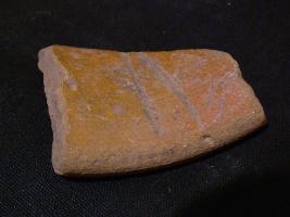 | Description / विवरण | It is a potsherd which is belonged to associated ware of O.C.P. culture. It is having slightly out-turned rim. Its red slip is flaked and incrustated to some extent. |
