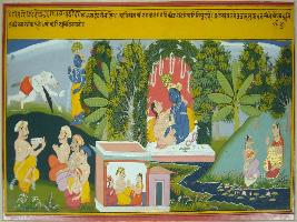 | Description / विवरण | Miniature painting based on Geet Govind depicting Rati krira of Krishna and Radha depicting their holy and loving union. The writing on the back side mentions that A leaf of 4th chapter. |