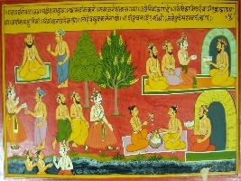 | Description / विवरण | Miniature painting based on Mahabharat - Gada parva. It depicts importance of Pilgrimage and penance in river Saraswati. |