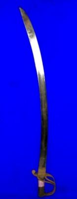 | Description / विवरण | Iron Kirch having slightly curved blade with grooves and chinkedar hilt padded with leather. |