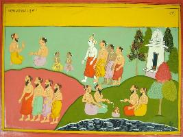 | Description / विवरण | Miniature painting based on Mahabharat - Gada parva depicting Balram is going for Pilrimage. It also depicts sages are performing yagna, and movintg forward. |