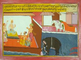 | Description / विवरण | Miniature painting based on Mahabharat - Udyam parva. The painting depict Galva is coming to meet king Harijshwa. |