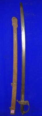 | Description / विवरण | Iron Kirch sword having straight blade and chinkedar hilt with ridges. The iron scabbard is completely rusted. |