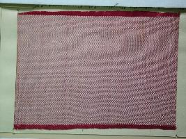 | Description / विवरण | This is a silk-specimen of Thana-silk. Its colour is red. It has lining pattern with red and white colour on this line ground. Its shape is rectangular. |