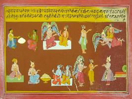 | Description / विवरण | Miniature painting based on Mahabharat - Udyam parva. The painting depicts Garuda and Galva while coming from the yagna of Jayati meet Vishwamitra. Vishwamitra asked them about the donation made by Jayati. |